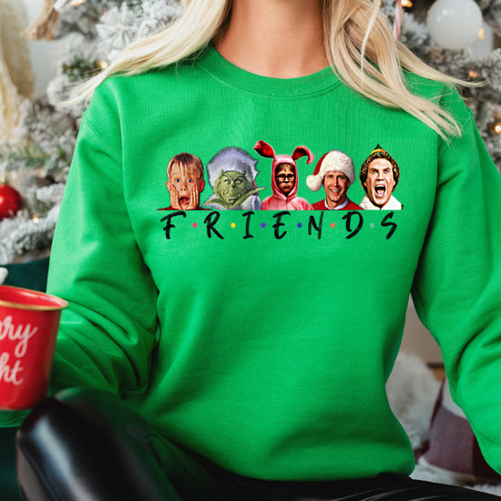 For many of us, the holidays wouldn't be the same without watching our favorite Christmas movies. And what could be more festive than cuddling up in a cozy sweater while we do it? This Iconic Christmas Movies Friends Crewneck Sweater is perfect for any movie lover. It's made of soft, high-quality cotton and features iconic imagery from some of our all-time favorite Christmas movies. Whether you're watching Elf, Home Alone, or Die Hard (yes, that's a Christmas movie!), this sweater will keep you warm and stylish. So grab a cup of hot cocoa, snuggle up in your comfiest blanket, and get ready to enjoy some holiday classics in style.