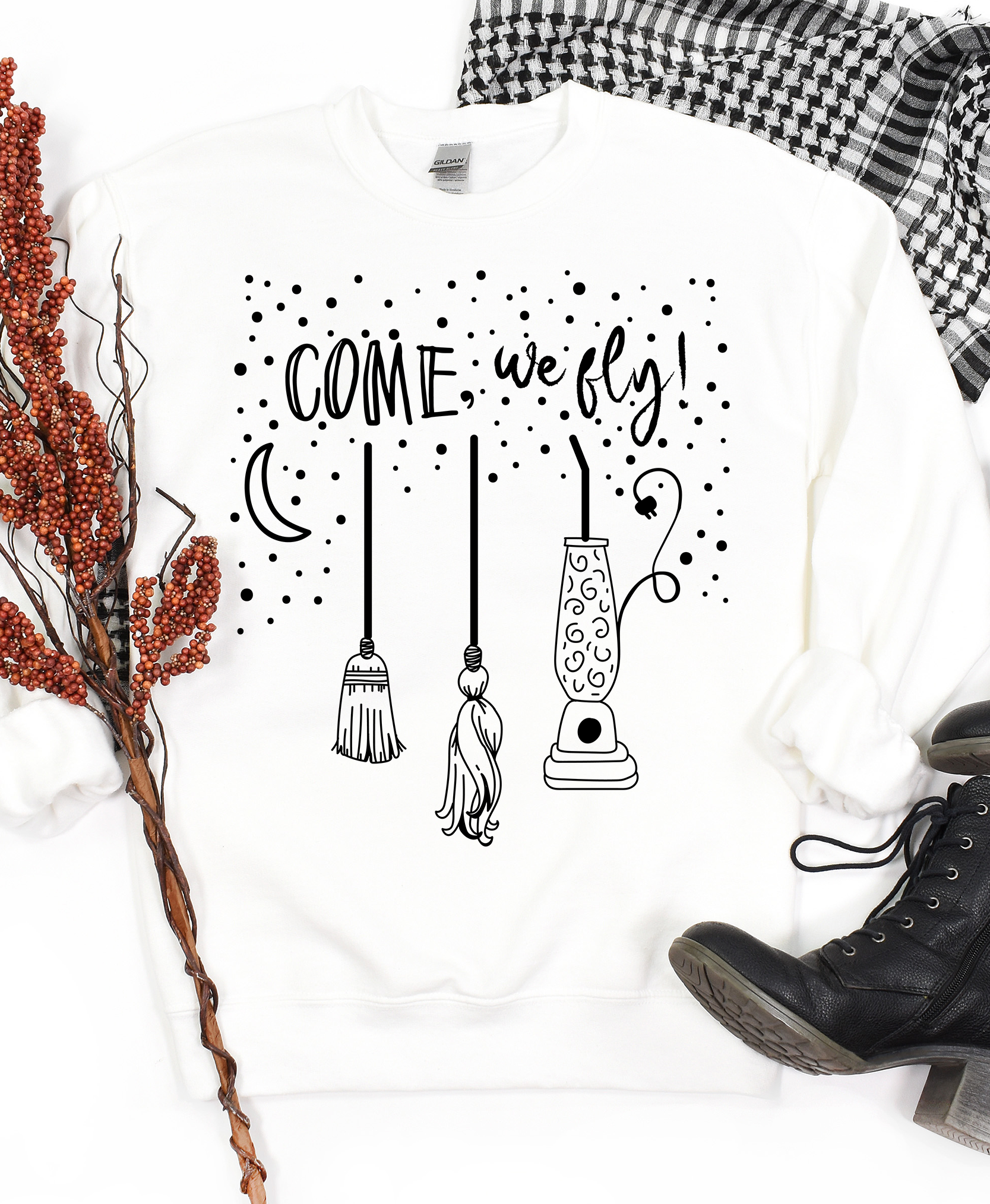 Get in the halloween spirit with this Come we Fly crewneck sweatshirt!