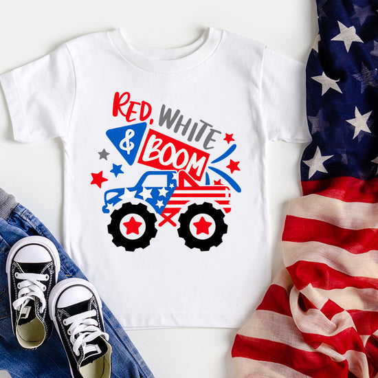 Have your little one looking stylish on the holidays in our 'Red, White, and Boom' tee!