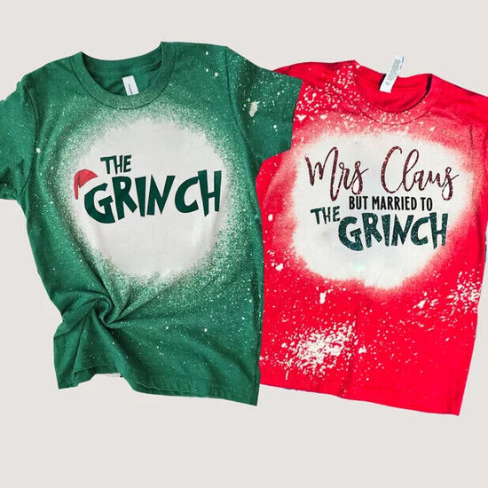 Introducing the Jessica Marie Boutique Grinch T-shirt and Mrs. Claus but married to the Grinch T-shirt! The perfect couples shirts for the holidays! The Grinch T-shirt is a must-have for any fan of the classic Dr. Seuss book and movie. It's also perfect for anyone who loves being a little bit naughty during the holidays! The Mrs. Claus but married to the Grinch T-shirt is perfect for the lady in your life who loves to play along with your holiday antics. Whether you're wearing these shirts to your office holiday party or out on the town with friends, you're sure to get noticed and start a few laughs. Order yours today and get into the holiday spirit!